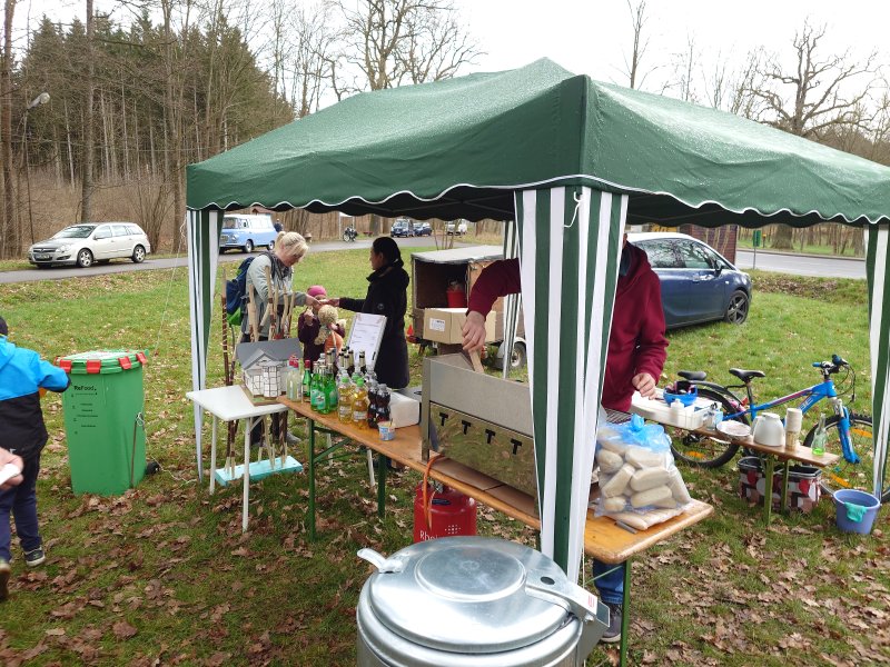 Besonders gefreut hat die Besucher, dass unser Verein Zollhausbrücke Bieberstein e.V. wieder zu einer gemütlichen Rast einladen konnte. Mit Bratwurst und erfrischenden Getränken war für das leibliche Wohl bestens gesorgt – und einige Besucher kamen sogar gezielt wegen dieser kleinen Stärkung zur Brücke. Das wechselhafte Wetter konnte der guten Stimmung dabei nichts anhaben.