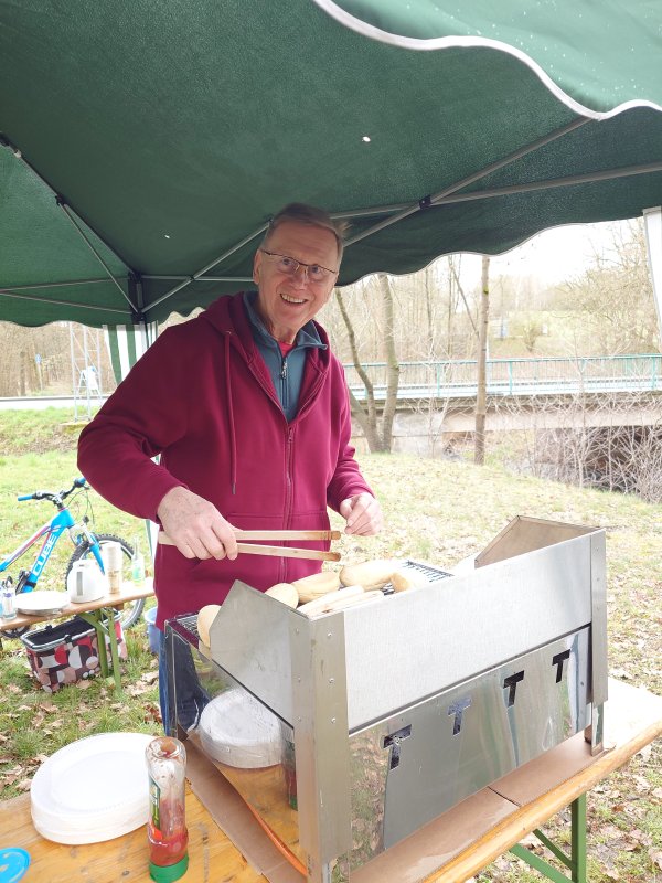 Besonders gefreut hat die Besucher, dass unser Verein Zollhausbrücke Bieberstein e.V. wieder zu einer gemütlichen Rast einladen konnte. Mit Bratwurst und erfrischenden Getränken war für das leibliche Wohl bestens gesorgt – und einige Besucher kamen sogar gezielt wegen dieser kleinen Stärkung zur Brücke. Das wechselhafte Wetter konnte der guten Stimmung dabei nichts anhaben.