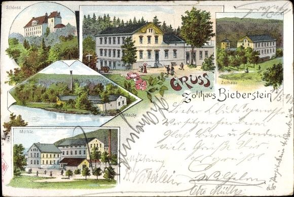 Das Zollhaus und seine alte historische Brücke, die in den 1980iger Jahren verkehrstechnisch durch eine parallele moderne Brücke ersetzt wurde, haben eine lange historische Vergangenheit. Beim Zollhaus überquerte die alte Meißner Straße (jetzt K7794) die Bobritzsch und verband in alter Zeit die damals politisch und wirtschaftlich bedeutendsten Städte Sachsens Meißen und Freiberg. Anfangs war die Überquerung ein einfacher Brückensteg. 1559 verpflichtete Kurfürst August, der Bauherr des Schlosses Augustusburg, den Marschall auf Bieberstein zur Instanthaltung der auf seinem Territorium liegenden Wege und Brücken, wofür er als Gegenleistung Wege- und Brückenzoll erheben durfte. 1696 verfügte August der Starke den einfachen Brückensteg durch eine stabile Holzbrücke zu ersetzen, was unter dem damaligen Grundherrn von Bieberstein, Gotthelff Friedrich von Schönberg, dann auch erfolgte mit der Erlaubnis, den Brückenzoll zu verdoppeln. 1732 wurde von dessen Sohn, Caspar von Schönberg, diese Holzbrücke durch eine steinerne Doppelbogenbrücke ersetzt, was auch noch am rechten Brückenschlussstein zu sehen ist. 1839 wurde „den Adlig vom Schroeterschen Gerichte“ (Grundherr von Bieberstein war zu dieser Zeit Haubold von Schröter) die Erhebung eines Wege- und Brückenzolls erneut bestätigt und auf einer Holztafel am Schlagbaum bekannt gemacht. Erhoben wurden für jedes Pferd 6 Pfennige, für jedes Rind 3 Pfennige und für jedes Schwein, Schaf und Kalb ein Pfennig. Ebenfalls einen Pfennig kostete jeder Schiebebock. Befreit von den Abgaben waren u.a. die Familien der Rittergutsbesitzer zu Reinsberg und zu Krummenhennersdorf und der Mahlmüller von Bieberstein (die nahe am rechten Muldenufer gelegene Biebersteiner Mühle brannte 1904 ab und existiert nicht mehr). Noch nach dem 1.Weltkrieg musste z. B. für einen Schiebebock Zoll bezahlt werden, während die inzwischen aufgekommenen Motorräder und Autos freie Überfahrt hatten, weil sie auf der Bekanntmachung von 1839 natürlich nicht mit aufgeführt waren. Die Erhebung des Brückenzolls ist dann wohl in den zwanziger Jahren für alle aufgehoben worden.